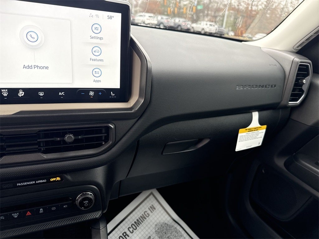 Black Diamond Off-Road Package (110V/400W AC Power Outlet, 2nd Row Carpeted Seatback, Auxiliary Switches & Wiring, Brush Guard, Cargo Management System (Shelf/Divider/Table), Cargo Mat, Class II Trailer Tow Pack w/Trailer Sway Control, Fender Tie Downs, Front & Rear Black Bumpers, Interior Grab Handle, Recovery Hooks, and Wheels: 17 Carbonized Gray Painted Aluminum), Convenience Package (Front Driver/Passenger Seat Back Map Pockets, Heated 8-Way Power Driver's Seat, LED Fog Lamps, Premium Wrapped Steering Wheel, and Universal Garage Door Opener (UGDO)), 4-Wheel Disc Brakes, 6 Speakers, ABS brakes, Air Conditioning, Alloy wheels, AM/FM radio: SiriusXM, AM/FM Stereo, Auto High-beam Headlights, Automatic temperature control, Brake assist, Cloth w/Easy-to-Clean Front Bucket Seats, Compass, Delay-off headlights, Driver door bin, Driver vanity mirror, Dual front impact airbags, Dual front side impact airbags, Electronic Stability Control, Emergency communication system: SYNC 4 911 Assist, Four wheel independent suspension, Front anti-roll bar, Front Bucket Seats, Front Center Armrest, Front reading lights, Fully automatic headlights, Heated door mirrors, Illuminated entry, Knee airbag, Low tire pressure warning, Occupant sensing airbag, Outside temperature display, Overhead airbag, Overhead console, Panic alarm, Passenger door bin, Passenger vanity mirror, Power door mirrors, Power Moonroof, Power steering, Power windows, Radio data system, Rear anti-roll bar, Rear Parking Sensors, Rear reading lights, Rear seat center armrest, Rear window defroster, Rear window wiper, Remote keyless entry, Security system, SiriusXM, Speed control, Speed-sensing steering, Speed-Sensitive Wipers, Split folding rear seat, Steering wheel mounted audio controls, SYNC 4 w/Enhanced Voice Recognition, Tachometer, Telescoping steering wheel, Tilt steering wheel, Traction control, Trip computer, Variably intermittent wipers, and Wheels: 17 Carbonized Gray-Painted AluminuM.