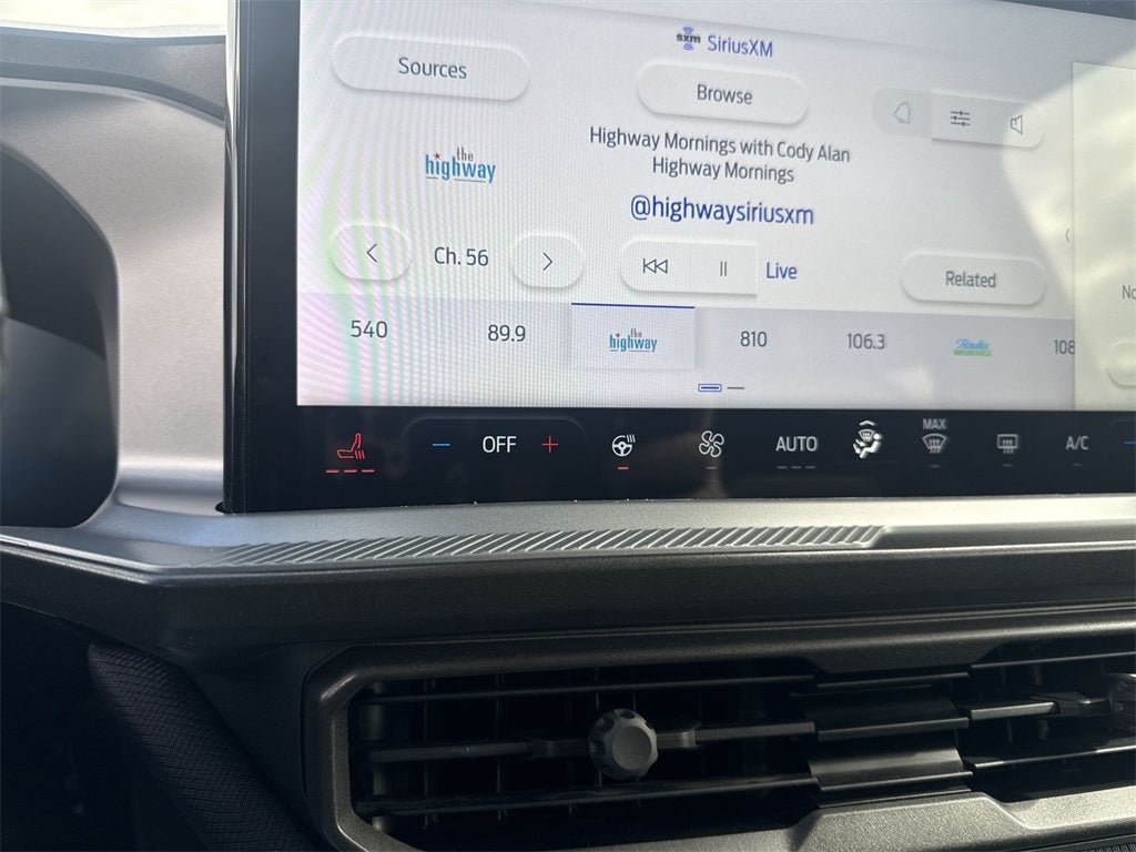 4-Wheel Disc Brakes, 6 Speakers, ABS brakes, Air Conditioning, Alloy wheels, AM/FM radio: SiriusXM, AM/FM Stereo, Auto High-beam Headlights, Auto-dimming Rear-View mirror, Automatic temperature control, Brake assist, Compass, Delay-off headlights, Driver door bin, Driver vanity mirror, Dual front impact airbags, Dual front side impact airbags, Electronic Stability Control, Emergency communication system: SYNC 4 911 Assist, Four wheel independent suspension, Front anti-roll bar, Front Bucket Seats, Front Center Armrest, Front Driver/Passenger Seat Back Map Pockets, Front dual zone A/C, Front fog lights, Front reading lights, Fully automatic headlights, Garage door transmitter, Heated door mirrors, Heated front seats, Heated steering wheel, Illuminated entry, Knee airbag, Low tire pressure warning, Memory seat, Occupant sensing airbag, Outside temperature display, Overhead airbag, Overhead console, Panic alarm, Passenger door bin, Passenger vanity mirror, Power door mirrors, Power driver seat, Power passenger seat, Power steering, Power windows, Premium Trimmed Front Bucket Seats w/Ebony/Roast, Radio data system, Rain sensing wipers, Rear anti-roll bar, Rear Parking Sensors, Rear reading lights, Rear seat center armrest, Rear window defroster, Rear window wiper, Remote keyless entry, Security system, SiriusXM, Speed control, Speed-sensing steering, Speed-Sensitive Wipers, Split folding rear seat, Steering wheel mounted audio controls, SYNC 4 w/Enhanced Voice Recognition, Tachometer, Telescoping steering wheel, Tilt steering wheel, Traction control, Trip computer, Variably intermittent wipers, and Wheels: 18 Ebony Black-Painted AluminuM.