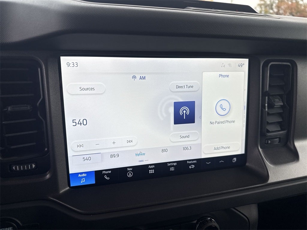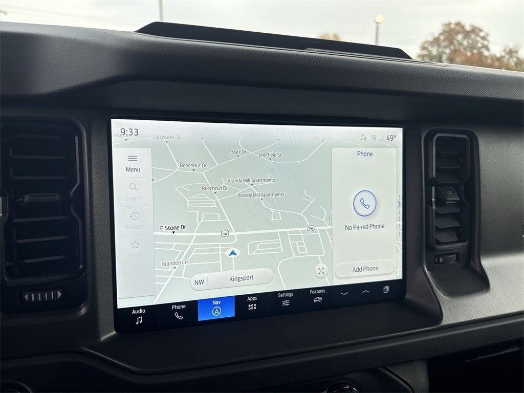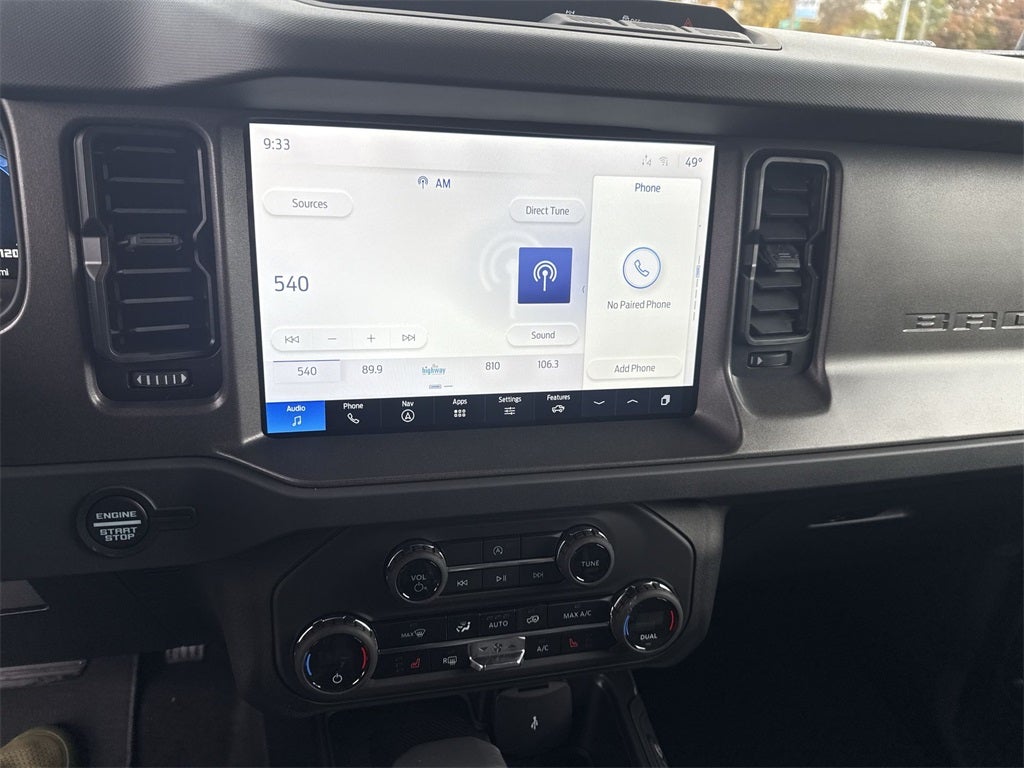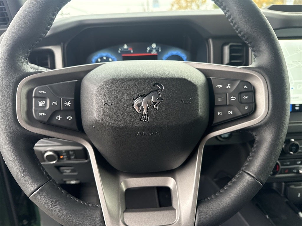 Equipment Group 222A Mid Package (2-Door Intelligent Access w/Lock/Unlock, Ambient Footwell Lighting, Connected Navigation, Dr & Pass Illuminated Sliding Visor Vanity Mirrors, Dual Smart Charging USB Ports, Dual-Zone Electronic Automatic Temperature Control, Front Row Heated Seats, Power Outlet - Back Side of Center Floor Console, and Rear Parking Sensors), 4-Wheel Disc Brakes, 4.46 Axle Ratio, 7 Speakers, ABS brakes, Air Conditioning, Alloy wheels, AM/FM radio: SiriusXM with 360L, AM/FM Stereo, Auto High-Beam Headlamps, Auto High-beam Headlights, BLIS Blind Spot Information System, Brake assist, Cloth Bucket Seats, Compass, Delay-off headlights, Driver door bin, Driver vanity mirror, Dual front impact airbags, Dual front side impact airbags, Electronic Stability Control, Emergency communication system: 911 Assist, Exterior Parking Camera Rear, Front anti-roll bar, Front Bucket Seats, Front Center Armrest, Front reading lights, Front wheel independent suspension, Fully automatic headlights, Heated door mirrors, Illuminated entry, Integrated roll-over protection, Internet access capable: FordPass Connect, Lane-Keeping System, Leather Shift Knob, Low tire pressure warning, Occupant sensing airbag, Outside temperature display, Overhead airbag, Overhead console, Panic alarm, Passenger door bin, Passenger vanity mirror, Power door mirrors, Power steering, Power windows, Pre-Collision Assist w/Automatic Emergency Braking, Radio data system, Rear-View Camera, Remote keyless entry, Security system, SiriusXM w/360L, Speed control, Split folding rear seat, Steering wheel mounted audio controls, SYNC 4, Tachometer, Telescoping steering wheel, Tilt steering wheel, Traction control, Trip computer, Variably intermittent wipers, and Wheels: 17 Carbonized Gray-Painted AluminuM.