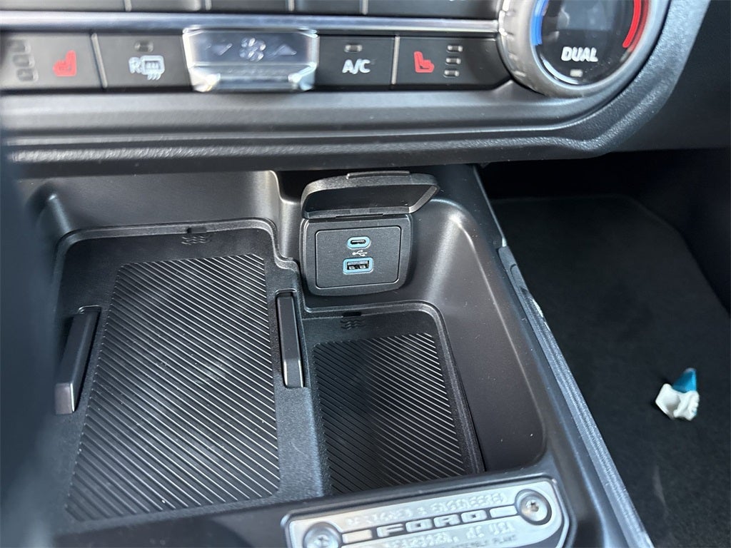 Equipment Group 222A Mid Package (2-Door Intelligent Access w/Lock/Unlock, Ambient Footwell Lighting, Connected Navigation, Dr & Pass Illuminated Sliding Visor Vanity Mirrors, Dual Smart Charging USB Ports, Dual-Zone Electronic Automatic Temperature Control, Front Row Heated Seats, Power Outlet - Back Side of Center Floor Console, and Rear Parking Sensors), 4-Wheel Disc Brakes, 4.46 Axle Ratio, 7 Speakers, ABS brakes, Air Conditioning, Alloy wheels, AM/FM radio: SiriusXM with 360L, AM/FM Stereo, Auto High-Beam Headlamps, Auto High-beam Headlights, BLIS Blind Spot Information System, Brake assist, Cloth Bucket Seats, Compass, Delay-off headlights, Driver door bin, Driver vanity mirror, Dual front impact airbags, Dual front side impact airbags, Electronic Stability Control, Emergency communication system: 911 Assist, Exterior Parking Camera Rear, Front anti-roll bar, Front Bucket Seats, Front Center Armrest, Front reading lights, Front wheel independent suspension, Fully automatic headlights, Heated door mirrors, Illuminated entry, Integrated roll-over protection, Internet access capable: FordPass Connect, Lane-Keeping System, Leather Shift Knob, Low tire pressure warning, Occupant sensing airbag, Outside temperature display, Overhead airbag, Overhead console, Panic alarm, Passenger door bin, Passenger vanity mirror, Power door mirrors, Power steering, Power windows, Pre-Collision Assist w/Automatic Emergency Braking, Radio data system, Rear-View Camera, Remote keyless entry, Security system, SiriusXM w/360L, Speed control, Split folding rear seat, Steering wheel mounted audio controls, SYNC 4, Tachometer, Telescoping steering wheel, Tilt steering wheel, Traction control, Trip computer, Variably intermittent wipers, and Wheels: 17 Carbonized Gray-Painted AluminuM.
