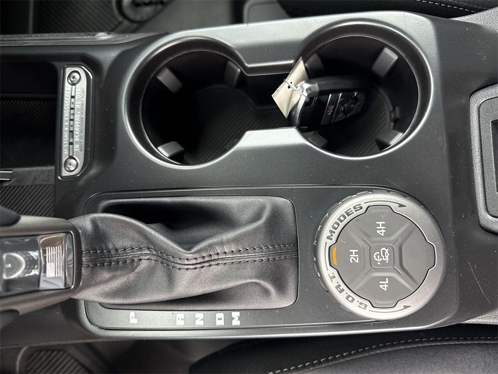 Equipment Group 222A Mid Package (2-Door Intelligent Access w/Lock/Unlock, Ambient Footwell Lighting, Connected Navigation, Dr & Pass Illuminated Sliding Visor Vanity Mirrors, Dual Smart Charging USB Ports, Dual-Zone Electronic Automatic Temperature Control, Front Row Heated Seats, Power Outlet - Back Side of Center Floor Console, and Rear Parking Sensors), 4-Wheel Disc Brakes, 4.46 Axle Ratio, 7 Speakers, ABS brakes, Air Conditioning, Alloy wheels, AM/FM radio: SiriusXM with 360L, AM/FM Stereo, Auto High-Beam Headlamps, Auto High-beam Headlights, BLIS Blind Spot Information System, Brake assist, Carbonized Gray Molded-In-Color Hard Top, Cloth Bucket Seats, Compass, Delay-off headlights, Driver door bin, Driver vanity mirror, Dual front impact airbags, Dual front side impact airbags, Electronic Stability Control, Emergency communication system: 911 Assist, Exterior Parking Camera Rear, Front anti-roll bar, Front Bucket Seats, Front Center Armrest, Front reading lights, Front wheel independent suspension, Fully automatic headlights, Hard Top Sound Deadening Headliner, Heated door mirrors, Illuminated entry, Integrated roll-over protection, Internet access capable: FordPass Connect, Lane-Keeping System, Leather Shift Knob, Low tire pressure warning, Occupant sensing airbag, Outside temperature display, Overhead airbag, Overhead console, Panic alarm, Passenger door bin, Passenger vanity mirror, Power door mirrors, Power steering, Power windows, Pre-Collision Assist w/Automatic Emergency Braking, Radio data system, Rear-View Camera, Rear-Window Defroster & Washer, Remote keyless entry, Security system, SiriusXM w/360L, Speed control, Split folding rear seat, Steering wheel mounted audio controls, SYNC 4, Tachometer, Telescoping steering wheel, Tilt steering wheel, Traction control, Trip computer, Variably intermittent wipers, and Wheels: 17 Carbonized Gray-Painted AluminuM.