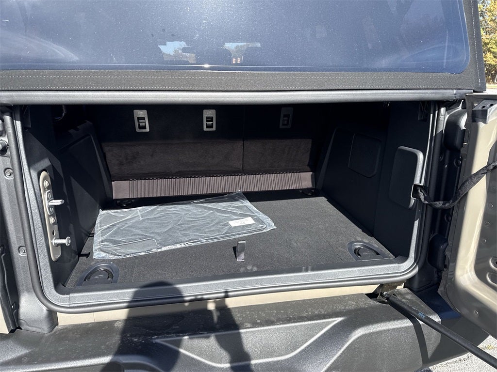 Equipment Group 222A Mid Package (2-Door Intelligent Access w/Lock/Unlock, Ambient Footwell Lighting, Connected Navigation, Dr & Pass Illuminated Sliding Visor Vanity Mirrors, Dual Smart Charging USB Ports, Dual-Zone Electronic Automatic Temperature Control, Front Row Heated Seats, Power Outlet - Back Side of Center Floor Console, and Rear Parking Sensors), 4-Wheel Disc Brakes, 4.46 Axle Ratio, 7 Speakers, ABS brakes, Air Conditioning, Alloy wheels, AM/FM radio: SiriusXM with 360L, AM/FM Stereo, Auto High-Beam Headlamps, Auto High-beam Headlights, BLIS Blind Spot Information System, Brake assist, Cloth Bucket Seats, Compass, Delay-off headlights, Driver door bin, Driver vanity mirror, Dual front impact airbags, Dual front side impact airbags, Electronic Stability Control, Emergency communication system: 911 Assist, Exterior Parking Camera Rear, Front anti-roll bar, Front Bucket Seats, Front Center Armrest, Front reading lights, Front wheel independent suspension, Fully automatic headlights, Heated door mirrors, Illuminated entry, Integrated roll-over protection, Internet access capable: FordPass Connect, Lane-Keeping System, Leather Shift Knob, Low tire pressure warning, Occupant sensing airbag, Outside temperature display, Overhead airbag, Overhead console, Panic alarm, Passenger door bin, Passenger vanity mirror, Power door mirrors, Power steering, Power windows, Pre-Collision Assist w/Automatic Emergency Braking, Radio data system, Rear-View Camera, Remote keyless entry, Security system, SiriusXM w/360L, Speed control, Split folding rear seat, Steering wheel mounted audio controls, SYNC 4, Tachometer, Telescoping steering wheel, Tilt steering wheel, Traction control, Trip computer, Variably intermittent wipers, and Wheels: 17 Carbonized Gray-Painted AluminuM.