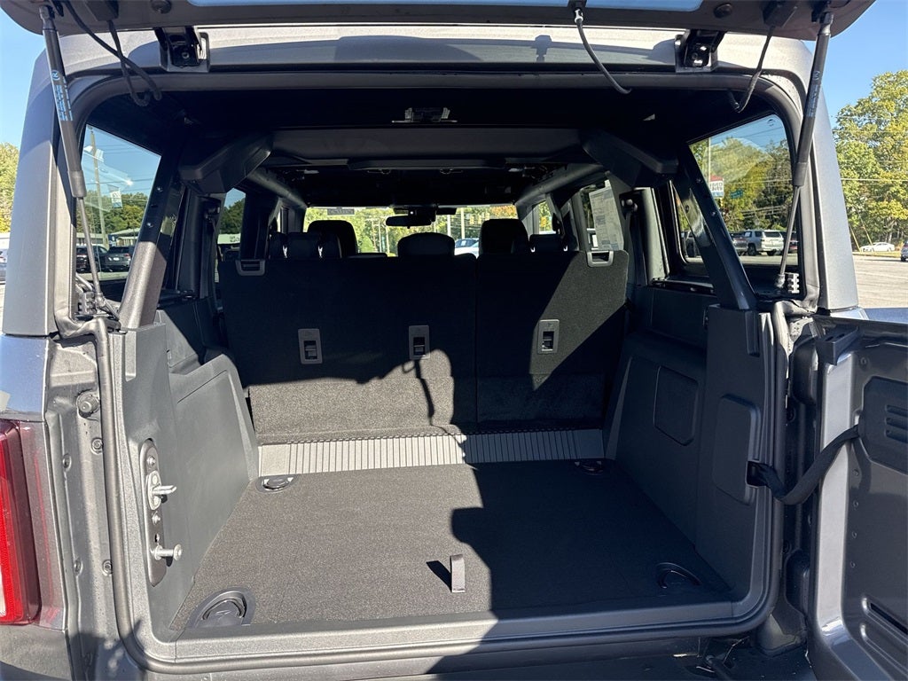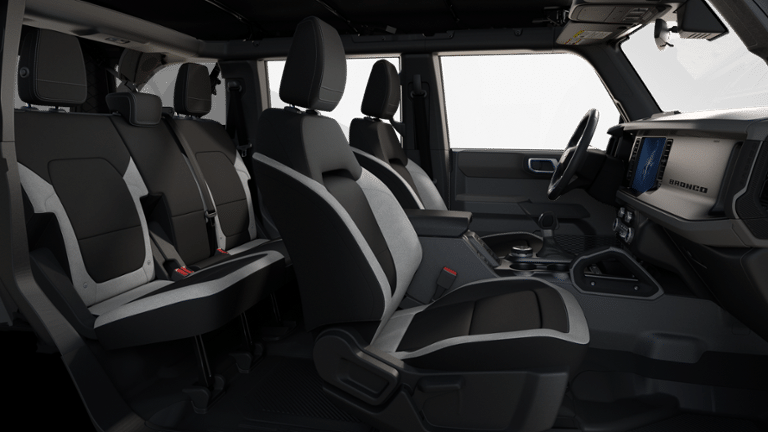 Equipment Group 222A Mid Package (2-Door Intelligent Access w/Lock/Unlock, Ambient Footwell Lighting, Connected Navigation, Dr & Pass Illuminated Sliding Visor Vanity Mirrors, Dual Smart Charging USB Ports, Dual-Zone Electronic Automatic Temperature Control, Front Row Heated Seats, Power Outlet - Back Side of Center Floor Console, and Rear Parking Sensors), 4-Wheel Disc Brakes, 4.46 Axle Ratio, 7 Speakers, ABS brakes, Air Conditioning, Alloy wheels, AM/FM radio: SiriusXM with 360L, AM/FM Stereo, Auto High-Beam Headlamps, Auto High-beam Headlights, BLIS Blind Spot Information System, Brake assist, Carbonized Gray Molded-In-Color Hard Top, Cloth Bucket Seats, Compass, Delay-off headlights, Driver door bin, Driver vanity mirror, Dual front impact airbags, Dual front side impact airbags, Electronic Stability Control, Emergency communication system: 911 Assist, Exterior Parking Camera Rear, Front anti-roll bar, Front Bucket Seats, Front Center Armrest, Front reading lights, Front wheel independent suspension, Fully automatic headlights, Hard Top Sound Deadening Headliner, Heated door mirrors, Illuminated entry, Integrated roll-over protection, Internet access capable: FordPass Connect, Lane-Keeping System, Leather Shift Knob, Low tire pressure warning, Occupant sensing airbag, Outside temperature display, Overhead airbag, Overhead console, Panic alarm, Passenger door bin, Passenger vanity mirror, Power door mirrors, Power steering, Power windows, Pre-Collision Assist w/Automatic Emergency Braking, Radio data system, Rear-View Camera, Rear-Window Defroster & Washer, Remote keyless entry, Security system, SiriusXM w/360L, Speed control, Split folding rear seat, Steering wheel mounted audio controls, SYNC 4, Tachometer, Telescoping steering wheel, Tilt steering wheel, Traction control, Trip computer, Variably intermittent wipers, and Wheels: 17 Carbonized Gray-Painted AluminuM.