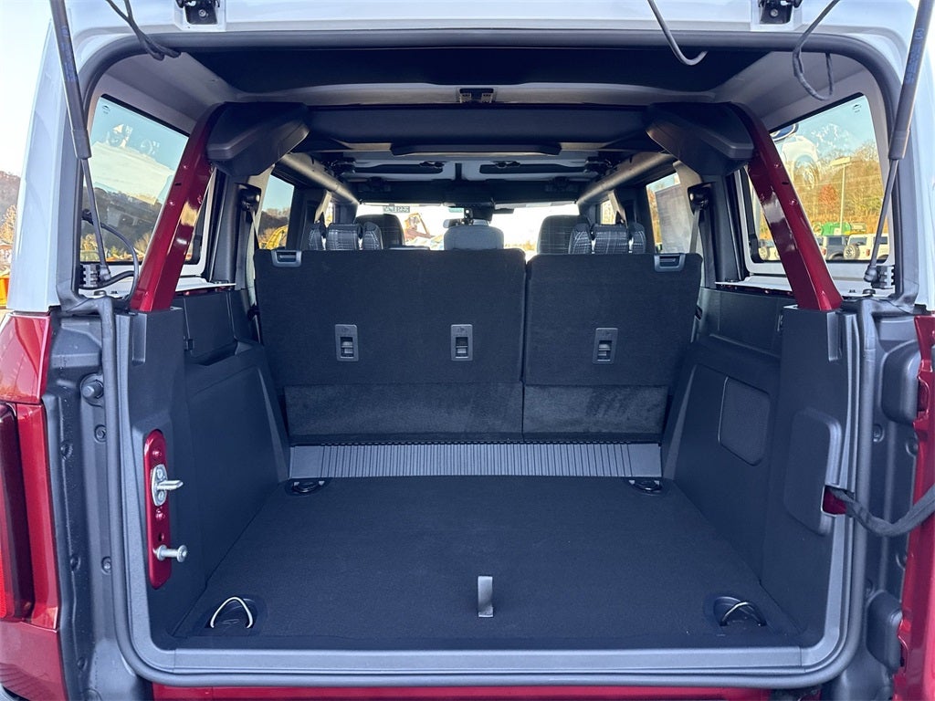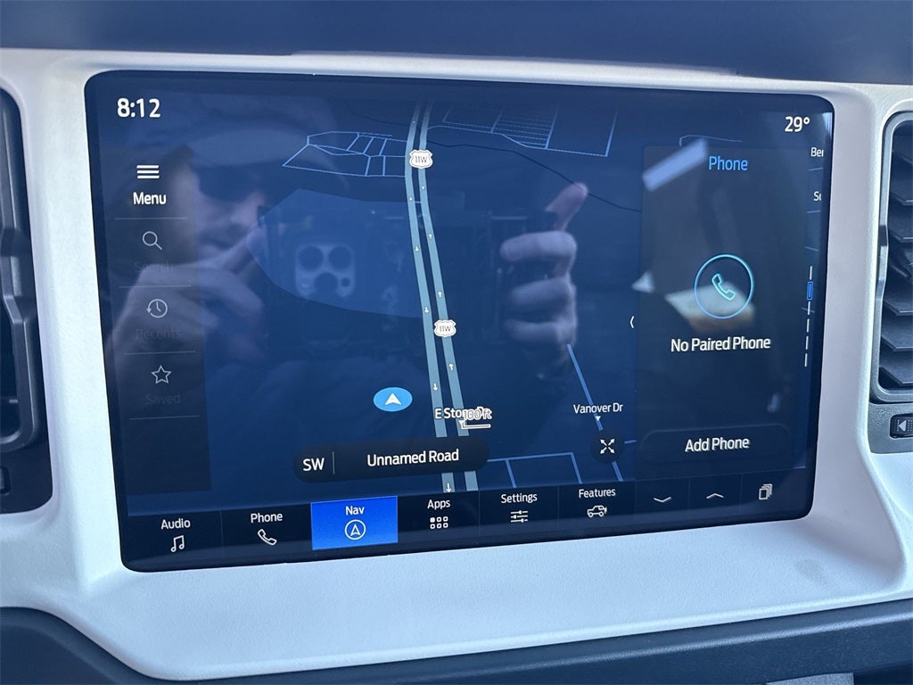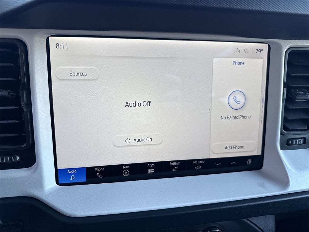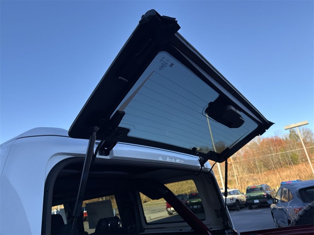 Equipment Group 662A Mid Package, 4-Wheel Disc Brakes, 7 Speakers, ABS brakes, Air Conditioning, Alloy wheels, AM/FM radio: SiriusXM with 360L, AM/FM Stereo, Auto High-beam Headlights, Auto-dimming Rear-View mirror, Automatic temperature control, Brake assist, Compass, Connected Navigation, Convertible HardTop, Convertible roof lining, Delay-off headlights, Driver door bin, Driver vanity mirror, Dual front impact airbags, Dual front side impact airbags, Electronic Stability Control, Emergency communication system: 911 Assist, Exterior Parking Camera Rear, Front anti-roll bar, Front Bucket Seats, Front Center Armrest, Front dual zone A/C, Front fog lights, Front reading lights, Front wheel independent suspension, Fully automatic headlights, Glass rear window, Heated door mirrors, Heated front seats, Heated steering wheel, Illuminated entry, Integrated roll-over protection, Internet access capable: FordPass Connect, Leather Shift Knob, Low tire pressure warning, Navigation system: Connected Navigation, Occupant sensing airbag, Outside temperature display, Overhead airbag, Overhead console, Panic alarm, Passenger door bin, Passenger vanity mirror, Plaid Cloth Front Heated Bucket Seats, Power door mirrors, Power steering, Power windows, Radio data system, Rear window defroster, Rear window wiper, Remote keyless entry, Security system, SiriusXM w/360L, Speed control, Split folding rear seat, Steering wheel mounted audio controls, SYNC 4, Tachometer, Telescoping steering wheel, Tilt steering wheel, Traction control, Trip computer, Variably intermittent wipers, and Wheels: 17 Unique WhitE.