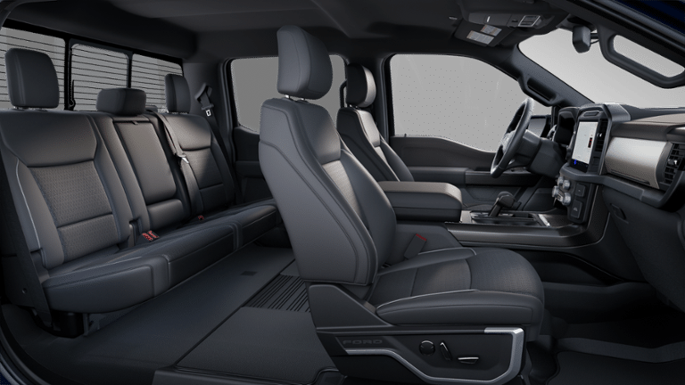 Equipment Group 501A Mid (6 Angular Bright Anodized Step Bar, Illuminated Driver & Passenger Visors, Power-Sliding Rear Window, and Wheels: 20 Chrome-Like PVD), FX4 Off-Road Package (4x4 FX4 Off-Road Bodyside Decal, Hill Descent Control, Monotube Rear Shocks, Off-Road Tuned Front Shock Absorbers, Rock Crawl Mode, and Tray Style Floor Liner w/o Carpet Mats), Tow/Haul Package, 4WD, 4-Wheel Disc Brakes, 8 Speakers, ABS brakes, ActiveX Trimmed Bucket Seats, Adjustable pedals, Air Conditioning, Alloy wheels, AM/FM radio: SiriusXM with 360L, Auto High-beam Headlights, Auto-dimming door mirrors, Auto-dimming Rear-View mirror, Automatic temperature control, Brake assist, Bumpers: chrome, Chrome wheels, Compass, Delay-off headlights, Driver door bin, Driver vanity mirror, Dual front impact airbags, Dual front side impact airbags, Electronic Stability Control, Emergency communication system: SYNC 4 911 Assist, Front anti-roll bar, Front Bucket Seats, Front Center Armrest, Front dual zone A/C, Front fog lights, Front License Plate Bracket, Front reading lights, Front wheel independent suspension, Fully automatic headlights, Garage door transmitter, Heated door mirrors, Heated front seats, Heated steering wheel, Illuminated entry, Internet access capable: FordPass Connect 5G, Low tire pressure warning, Memory seat, Navigation system: Connected Navigation, Occupant sensing airbag, Outside temperature display, Overhead airbag, Overhead console, Panic alarm, Passenger door bin, Passenger vanity mirror, Pedal memory, Power door mirrors, Power driver seat, Power passenger seat, Power steering, Power windows, Radio data system, Radio: B&O Sound System by Bang & Olufsen, Rain sensing wipers, Rear reading lights, Rear seat center armrest, Rear step bumper, Rear window defroster, Remote keyless entry, Security system, Speed control, Split folding rear seat, Steering wheel mounted audio controls, SYNC 4 w/Enhanced Voice Recognition, Tachometer, Telescoping steering wheel, Tilt steering wheel, Traction control, Trip computer, Turn signal indicator mirrors, Variably intermittent wipers, Ventilated front seats, Voltmeter, and Wheels: 18 Chrome-Like PVD.