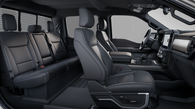 Equipment Group 501A Mid (6 Angular Bright Anodized Step Bar, Illuminated Driver & Passenger Visors, Power-Sliding Rear Window, and Wheels: 20 Chrome-Like PVD), FX4 Off-Road Package (4x4 FX4 Off-Road Bodyside Decal, Hill Descent Control, Monotube Rear Shocks, Off-Road Tuned Front Shock Absorbers, Rock Crawl Mode, and Tray Style Floor Liner w/o Carpet Mats), Mobile Office Package (Console Worksurface, Partitioned Lockable Rear Storage, and Wireless Charging), Tow/Haul Package, 4WD, 4-Wheel Disc Brakes, 8 Speakers, ABS brakes, ActiveX Trimmed Bucket Seats, Adjustable pedals, Air Conditioning, Alloy wheels, AM/FM radio: SiriusXM with 360L, Auto High-beam Headlights, Auto-dimming door mirrors, Auto-dimming Rear-View mirror, Automatic temperature control, Brake assist, Bumpers: chrome, Chrome wheels, Compass, Delay-off headlights, Driver door bin, Driver vanity mirror, Dual front impact airbags, Dual front side impact airbags, Electronic Stability Control, Emergency communication system: SYNC 4 911 Assist, Front anti-roll bar, Front Bucket Seats, Front Center Armrest, Front dual zone A/C, Front fog lights, Front License Plate Bracket, Front reading lights, Front wheel independent suspension, Fully automatic headlights, Garage door transmitter, Heated door mirrors, Heated front seats, Heated steering wheel, Illuminated entry, Internet access capable: FordPass Connect 5G, Low tire pressure warning, Memory seat, Navigation system: Connected Navigation, Occupant sensing airbag, Outside temperature display, Overhead airbag, Overhead console, Panic alarm, Passenger door bin, Passenger vanity mirror, Pedal memory, Power door mirrors, Power driver seat, Power passenger seat, Power steering, Power windows, Radio data system, Radio: B&O Sound System by Bang & Olufsen, Rain sensing wipers, Rear reading lights, Rear seat center armrest, Rear step bumper, Rear window defroster, Remote keyless entry, Security system, Speed control, Split folding rear seat, Steering wheel mounted audio controls, SYNC 4 w/Enhanced Voice Recognition, Tachometer, Telescoping steering wheel, Tilt steering wheel, Tough Bed Spray-In Bedliner, Traction control, Trip computer, Turn signal indicator mirrors, Variably intermittent wipers, Ventilated front seats, Voltmeter, and Wheels: 18 Chrome-Like PVD.