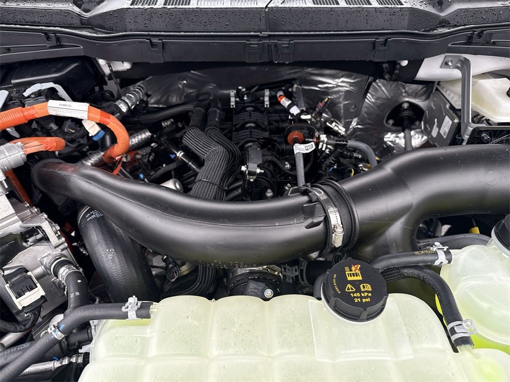 Equipment Group 501A Mid (Wheels: 20 Chrome-Like PVD), Tow/Haul Package, 3.5L PowerBoost Full-Hybrid V6, 4WD, 4-Wheel Disc Brakes, 8 Speakers, ABS brakes, ActiveX Trimmed Bucket Seats, Adjustable pedals, Air Conditioning, Alloy wheels, AM/FM radio: SiriusXM with 360L, Auto High-beam Headlights, Auto-dimming door mirrors, Auto-dimming Rear-View mirror, Automatic temperature control, BlueCruise Equipped (1-Year Plan), Brake assist, Bumpers: chrome, Chrome wheels, Compass, Delay-off headlights, Driver door bin, Driver vanity mirror, Dual front impact airbags, Dual front side impact airbags, Electronic Stability Control, Emergency communication system: SYNC 4 911 Assist, Front anti-roll bar, Front Bucket Seats, Front Center Armrest, Front dual zone A/C, Front fog lights, Front reading lights, Front wheel independent suspension, Fully automatic headlights, Garage door transmitter, Heated door mirrors, Heated front seats, Heated steering wheel, Illuminated entry, Internet access capable: FordPass Connect 5G, Low tire pressure warning, Memory seat, Navigation system: Connected Navigation, Occupant sensing airbag, Outside temperature display, Overhead airbag, Overhead console, Panic alarm, Passenger door bin, Passenger vanity mirror, Pedal memory, Power door mirrors, Power driver seat, Power passenger seat, Power steering, Power Telescoping/Glass/Folding Trailer Tow Mirrors, Power windows, Radio data system, Radio: B&O Sound System by Bang & Olufsen, Rain sensing wipers, Rear reading lights, Rear seat center armrest, Rear step bumper, Rear window defroster, Remote keyless entry, Security system, Speed control, Split folding rear seat, Steering wheel mounted audio controls, SYNC 4 w/Enhanced Voice Recognition, Tachometer, Telescoping steering wheel, Tilt steering wheel, Traction control, Trip computer, Turn signal indicator mirrors, Variably intermittent wipers, Ventilated front seats, Voltmeter, and Wheels: 18 Chrome-Like PVD.