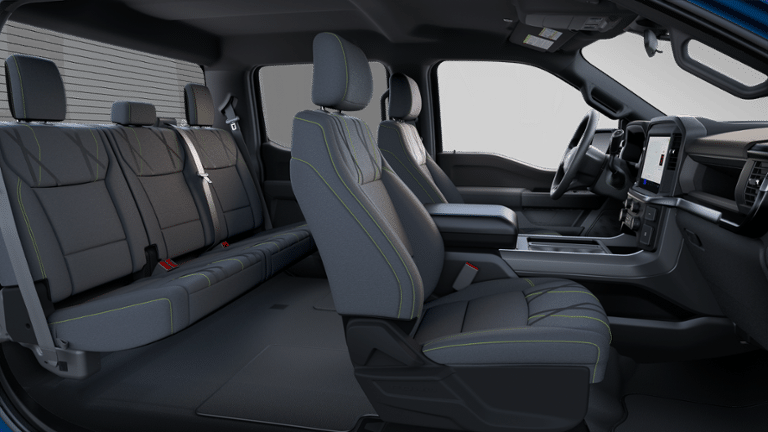 Equipment Group 200B Standard, GVWR: 6,650 lbs Payload Package, 4WD, 4-Wheel Disc Brakes, 6 Speakers, ABS brakes, Air Conditioning, Alloy wheels, AM/FM radio: SiriusXM with 360L, Auto High-beam Headlights, Brake assist, Bumpers: body-color, Compass, Delay-off headlights, Driver door bin, Dual front impact airbags, Dual front side impact airbags, Electronic Stability Control, Emergency communication system: SYNC 4 911 Assist, Front anti-roll bar, Front Bucket Seats, Front Center Armrest, Front License Plate Bracket, Front reading lights, Front wheel independent suspension, Fully automatic headlights, Heated door mirrors, Illuminated entry, Internet access capable: FordPass Connect 5G, Low tire pressure warning, Occupant sensing airbag, Outside temperature display, Overhead airbag, Overhead console, Panic alarm, Passenger door bin, Passenger vanity mirror, Power door mirrors, Power steering, Power windows, Radio data system, Radio: AM/FM Stereo w/SiriusXM 360L, Rear Parking Sensors, Rear step bumper, Rear window defroster, Remote keyless entry, Security system, Speed control, Split folding rear seat, Steering wheel mounted audio controls, SYNC 4 w/Enhanced Voice Recognition, Tachometer, Telescoping steering wheel, Tilt steering wheel, Traction control, Trip computer, Variably intermittent wipers, Voltmeter, and Wheels: 18 Gloss BlacK.