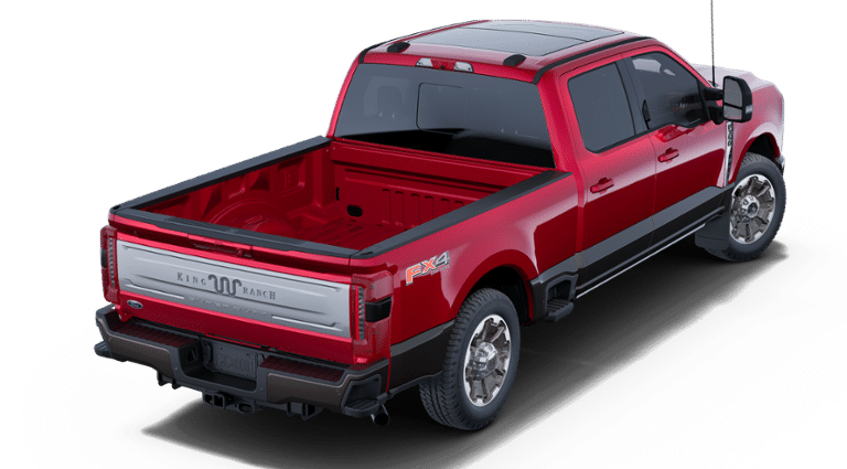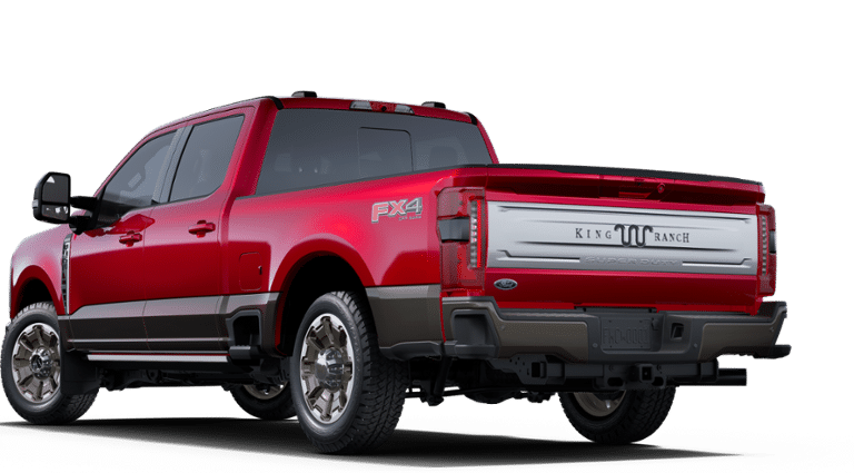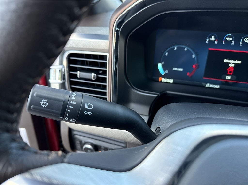 FX4 Off-Road Package (Hill Descent Control, Off-Road Specifically Tuned Shock Absorbers, and Unique FX4 Off-Road Box Decal), Order Code 710A (Electronic-Locking with 3.73 Axle Ratio, Flow-Through Console, Radio: B&O Unleashed Sound System by Bang & Olufsen, SiriusXM Radio with 360L, SYNC 4 with Enhanced Voice Recognition, Unique King Ranch Leather 40/Console/40 Seats, and Wheels: 20 Bright Machined Cast Aluminum), Snow Plow Prep Package, 4WD, 14 Speakers, 4-Wheel Disc Brakes, 410 Amp Dual Alternators, ABS brakes, Adjustable pedals, Air Conditioning, Alloy wheels, AM/FM radio: SiriusXM with 360L, Auto High-beam Headlights, Auto tilt-away steering wheel, Auto-dimming Rear-View mirror, Automatic temperature control, Brake assist, Compass, Delay-off headlights, Driver door bin, Driver vanity mirror, Dual front impact airbags, Dual front side impact airbags, Electronic Stability Control, Emergency communication system: SYNC 4 911 Assist, Front anti-roll bar, Front Bucket Seats, Front Center Armrest, Front dual zone A/C, Front fog lights, Front License Plate Bracket, Front reading lights, Fully automatic headlights, Garage door transmitter, Heads-Up Display, Heated door mirrors, Heated front seats, Heated rear seats, Heated steering wheel, Illuminated entry, Internet access capable: FordPass Connect 5G, Leather steering wheel, Low tire pressure warning, Max Recline Seats, Memory seat, Navigation System, Outside temperature display, Overhead airbag, Overhead console, Panic alarm, Passenger door bin, Passenger vanity mirror, Pedal memory, Power door mirrors, Power driver seat, Power passenger seat, Power steering, Power windows, Rain sensing wipers, Rear reading lights, Rear seat center armrest, Rear step bumper, Rear window defroster, Remote keyless entry, Security system, Speed control, Split folding rear seat, Steering wheel memory, Steering wheel mounted A/C controls, Steering wheel mounted audio controls, Tachometer, Telescoping steering wheel, Tilt steering wheel, Traction control, Trip computer, Turn signal indicator mirrors, Twin Panel Power Moonroof, Variably intermittent wipers, and Ventilated front seatS.