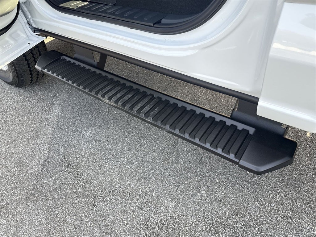 GVWR: 10,900 Lb Payload Package, 4WD, 190 Amp Alternator, 4 Speakers, 4-Wheel Disc Brakes, ABS brakes, Air Conditioning, AM/FM radio, Brake assist, Cloth 40/20/40 Split Bench Seat, Compass, Delay-off headlights, Dual front impact airbags, Dual front side impact airbags, Electronic Stability Control, Emergency communication system: SYNC 4 911 Assist, Engine Block Heater, Exterior Parking Camera Rear, Front anti-roll bar, Front Center Armrest w/Storage, Front reading lights, Fully automatic headlights, Heated door mirrors, Illuminated entry, Internet access capable: FordPass Connect 5G, Low tire pressure warning, Onboard Scales and Smart Hitch, Outside temperature display, Overhead airbag, Overhead console, Panic alarm, Passenger cancellable airbag, Passenger vanity mirror, Platform Running Boards, Power door mirrors, Power steering, Power windows, Radio: AM/FM Stereo with MP3 Player, Rear step bumper, Remote keyless entry, Security system, Speed control, Steering wheel mounted audio controls, SYNC 4, Tachometer, Telescoping steering wheel, Tilt steering wheel, Traction control, Trip computer, Turn signal indicator mirrors, Upfitter Switches (6), and Variably intermittent wiperS.