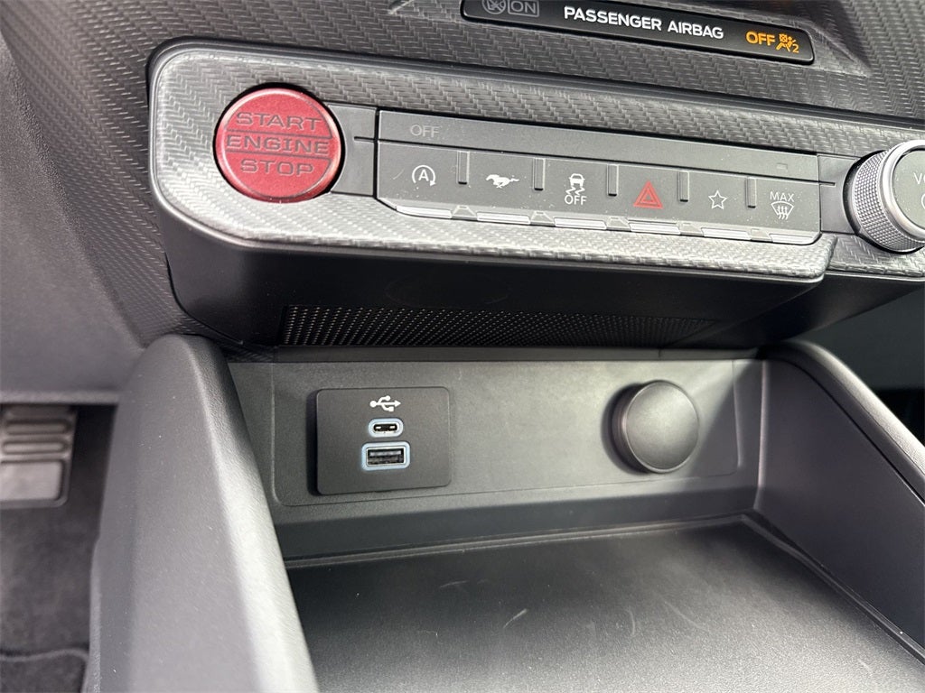 Equipment Group 301A High Package (9-Speaker Stereo System and Cloth/Vinyl Heated Bucket Seats), 4-Wheel Disc Brakes, ABS brakes, Air Conditioning, Alloy wheels, AM/FM Stereo, Auto High-beam Headlights, Automatic temperature control, Brake assist, Bumpers: body-color, Compass, Delay-off headlights, Driver door bin, Driver vanity mirror, Dual front impact airbags, Dual front side impact airbags, Electronic Stability Control, Emergency communication system: 911 Assist, Exterior Parking Camera Rear, Four wheel independent suspension, Front anti-roll bar, Front Bucket Seats, Front Center Armrest, Front dual zone A/C, Front reading lights, Fully automatic headlights, Illuminated entry, Knee airbag, Leather Shift Knob, Leather steering wheel, Low tire pressure warning, Occupant sensing airbag, Outside temperature display, Overhead airbag, Overhead console, Panic alarm, Passenger door bin, Passenger vanity mirror, Power door mirrors, Power steering, Power windows, Radio data system, Rain sensing wipers, Rear anti-roll bar, Rear Parking Sensors, Rear window defroster, Remote keyless entry, Speed control, Speed-sensing steering, Speed-Sensitive Wipers, Split folding rear seat, Spoiler, Sport steering wheel, Steering wheel mounted audio controls, SYNC 4, Tachometer, Telescoping steering wheel, Tilt steering wheel, Traction control, Trip computer, Variably intermittent wipers, and VoltmeteR.