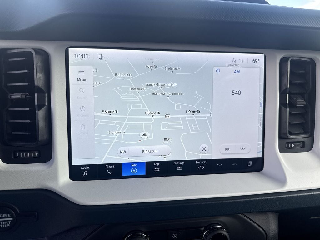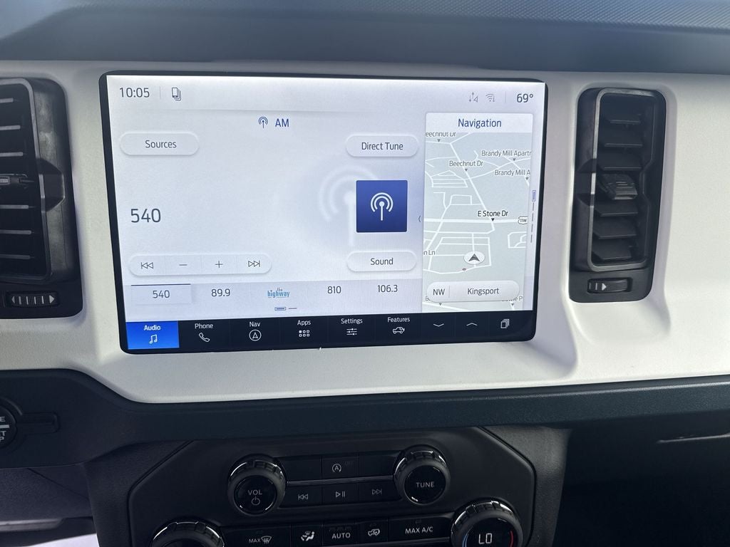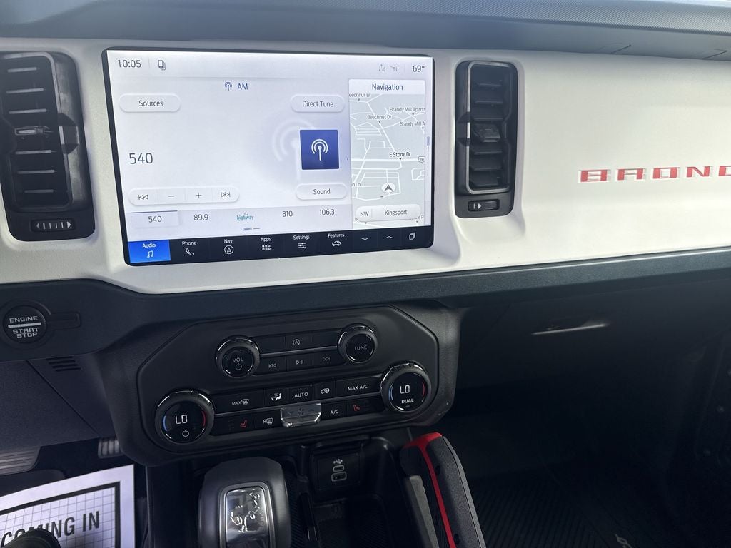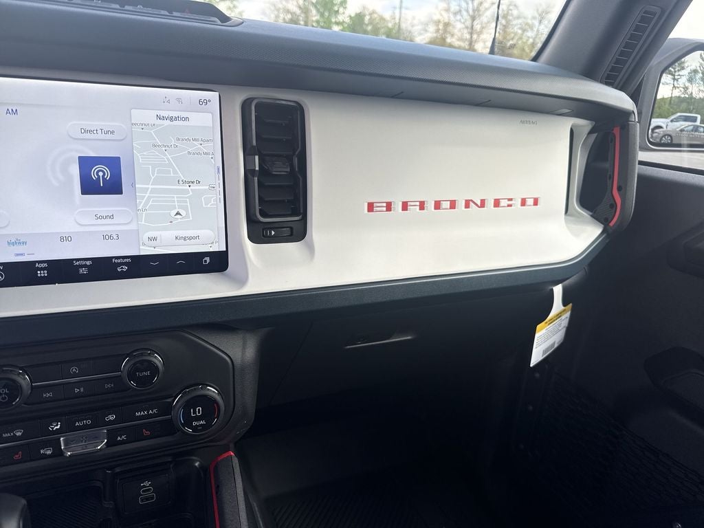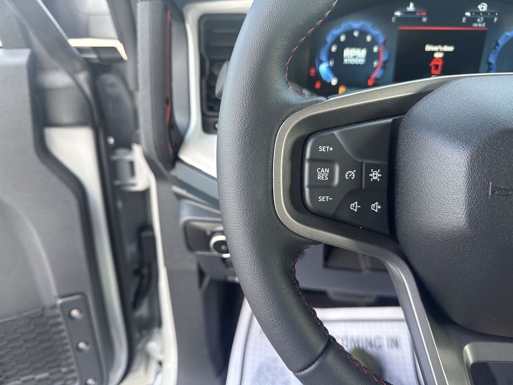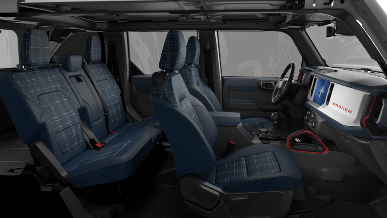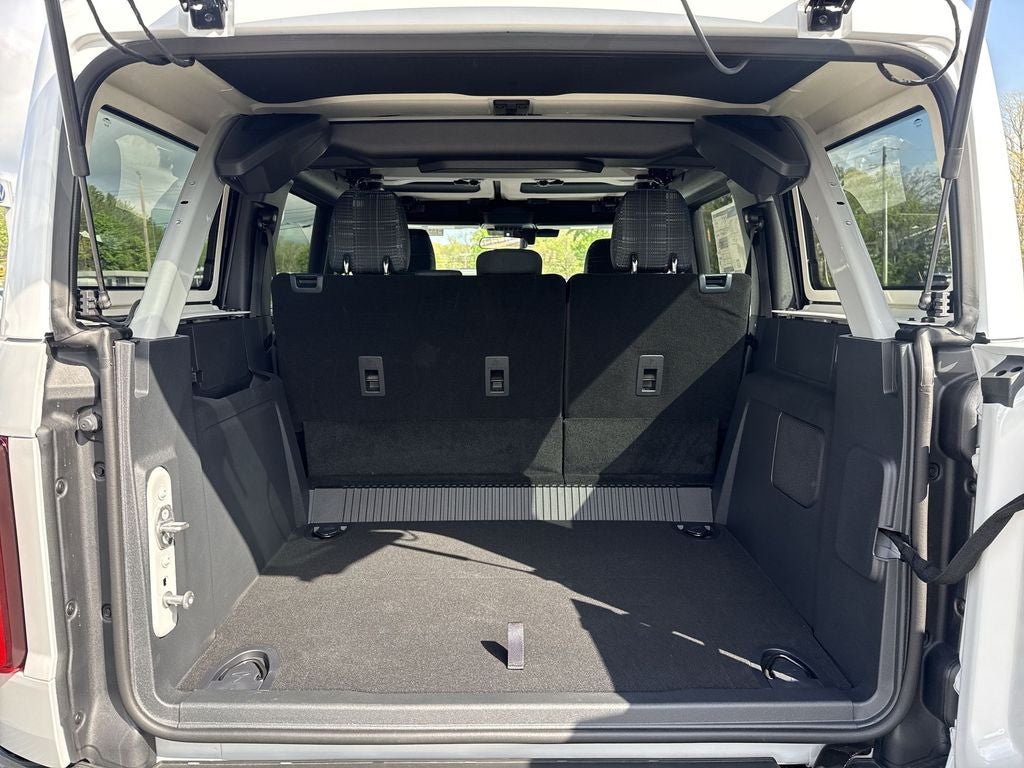 Ford Connectivity Package (1-Year Included), 4-Wheel Disc Brakes, 7 Speakers, ABS brakes, Air Conditioning, Alloy wheels, AM/FM radio: SiriusXM with 360L, AM/FM Stereo, Auto High-beam Headlights, Auto-dimming Rear-View mirror, Automatic temperature control, Brake assist, Compass, Connected Navigation, Convertible HardTop, Convertible roof lining, Delay-off headlights, Driver door bin, Driver vanity mirror, Dual front impact airbags, Dual front side impact airbags, Electronic Stability Control, Emergency communication system: 911 Assist, Exterior Parking Camera Rear, Front anti-roll bar, Front Bucket Seats, Front Center Armrest, Front dual zone A/C, Front fog lights, Front reading lights, Front wheel independent suspension, Fully automatic headlights, Glass rear window, Heated door mirrors, Heated front seats, Heated steering wheel, Illuminated entry, Integrated roll-over protection, Low tire pressure warning, Navigation system: Connected Navigation, Occupant sensing airbag, Outside temperature display, Overhead airbag, Overhead console, Panic alarm, Passenger door bin, Passenger vanity mirror, Plaid Cloth Front Heated Bucket Seats, Power door mirrors, Power steering, Power windows, Radio data system, Rear window defroster, Rear window wiper, Remote keyless entry, Security system, SiriusXM with 360L, Speed control, Split folding rear seat, Steering wheel mounted audio controls, SYNC 4, Tachometer, Telescoping steering wheel, Tilt steering wheel, Traction control, Trip computer, Variably intermittent wipers, and Wheels: 17 Unique WhitE.