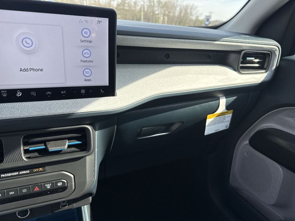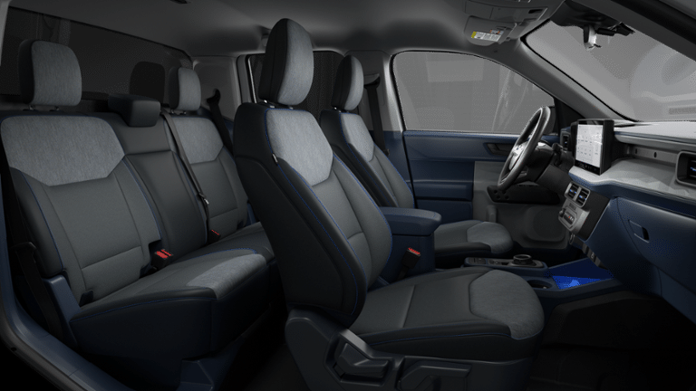 Equipment Group 301A (2.91 Axle Ratio, Radio: AM/FM Stereo with 6 Speakers, SiriusXM with 360L, SYNC 4 with Enhanced Voice Recognition, Unique Cloth Front Bucket Seats, and Wheels: 17 Carbonized Gray Painted Aluminum), Ford Co-Pilot360 (Auto High Beams, BLIS with Cross-Traffic Alert and Trailer Coverage, Exit Warning, Intersection Assist, Lane-Keeping System, Power Glass Manual-Folding Mirrors, Pre-Collision Assist with Automatic Emergency Braking, Rear Cross Traffic Braking, Rear Parking Sensors, and Rear-View Camera), Ford Connectivity Package (1-Year Included), Internet access capable: 5G Modem - Ford Connectivity Package, XLT Luxury Package (Heated Mirror with Painted Black Skull Caps, Heated Seats, LED Box Lighting, Pro Power Onboard - 400W, Remote Start System, and Soft Vinyl Wrapped Heated Steering Wheel), 2.5L I-4 Hybrid, 4-Wheel Disc Brakes, 6 Speakers, ABS brakes, Air Conditioning, Alloy wheels, AM/FM radio: SiriusXM with 360L, Apple CarPlay/Android Auto, Auto High-beam Headlights, Automatic temperature control, Brake assist, Bumpers: body-color, Compass, Delay-off headlights, Driver door bin, Driver vanity mirror, Dual front impact airbags, Dual front side impact airbags, Electronic Stability Control, Emergency communication system: SYNC 4 911 Assist, Exterior Parking Camera Rear, Four wheel independent suspension, Front anti-roll bar, Front Bucket Seats, Front Center Armrest, Front reading lights, Fully automatic headlights, Illuminated entry, Knee airbag, Low tire pressure warning, Occupant sensing airbag, Outside temperature display, Overhead airbag, Overhead console, Panic alarm, Passenger door bin, Passenger vanity mirror, Power door mirrors, Power steering, Power windows, Radio data system, Rear anti-roll bar, Rear seat center armrest, Rear step bumper, Remote keyless entry, Security system, Speed control, Speed-sensing steering, Steering wheel mounted audio controls, Telescoping steering wheel, Tilt steering wheel, Traction control, and Trip computeR.
