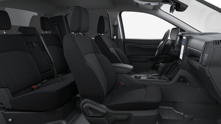 STX Appearance Package (Halogen Fog Lamps, LED Reflector Headlamps, STX Fender Badge, and Wheels: 17 Silver-Painted Aluminum), Trailer Tow Package (Class IV Trailer Hitch Receiver), 4WD, 3.73 Axle Ratio, 4-Wheel Disc Brakes, 6 Speakers, ABS brakes, Air Conditioning, Alloy wheels, AM/FM radio, AM/FM Stereo, Auto High-beam Headlights, Brake assist, Bumpers: body-color, Cloth Front Bucket Seats, Compass, Delay-off headlights, Driver door bin, Dual front impact airbags, Dual front side impact airbags, Electronic Stability Control, Emergency communication system: SYNC 4 911 Assist, Front anti-roll bar, Front Bucket Seats, Front Center Armrest, Front fog lights, Front reading lights, Front wheel independent suspension, Fully automatic headlights, Illuminated entry, Low tire pressure warning, Occupant sensing airbag, Outside temperature display, Overhead airbag, Overhead console, Panic alarm, Passenger door bin, Power door mirrors, Power steering, Power windows, Pro Power Onboard - 400W, Rear reading lights, Rear seat center armrest, Rear step bumper, Remote keyless entry, Security system, Speed control, Speed-sensing steering, Steering wheel mounted audio controls, SYNC 4A, Telescoping steering wheel, Tilt steering wheel, Traction control, Trip computer, Variably intermittent wipers, and VoltmeteR.