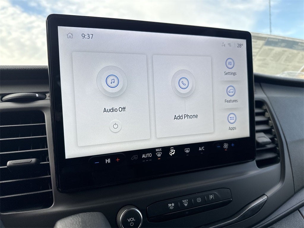 Ford Connectivity Package (1-Year Included), 4 Speakers, 4-Wheel Disc Brakes, ABS brakes, Air Conditioning, AM/FM radio, AM/FM Stereo, Apple CarPlay/Android Auto, Auto High-beam Headlights, Brake assist, Dark Palazzo Gray Cloth Bucket Seats with Armrests, Dark Palazzo Gray Vinyl Bucket Seats, Delay-off headlights, Driver door bin, Driver's Seat Mounted Armrest, Dual front impact airbags, Dual front side impact airbags, Electronic Stability Control, Emergency communication system: 911 Assist, Exterior Parking Camera Rear, Fixed Rr Cargo Door & 2nd Row Passenger-Side Glass, Front anti-roll bar, Front Bucket Seats, Front reading lights, Front wheel independent suspension, Fully automatic headlights, Illuminated entry, Low tire pressure warning, Navigation system: Connected Navigation, Occupant sensing airbag, Overhead airbag, Panic alarm, Passenger cancellable airbag, Passenger door bin, Power door mirrors, Power steering, Power windows, Privacy Glass, Rain sensing wipers, Rear-Window Defroster, Rearview Mirror, Remote keyless entry, Speed control, Steering wheel mounted audio controls, SYNC 4, Tachometer, Telescoping steering wheel, Tilt steering wheel, Traction control, Variably intermittent wipers, Vinyl Front Bucket Seats, and Wheels: 16 Silver Steel with Black HubcaP.