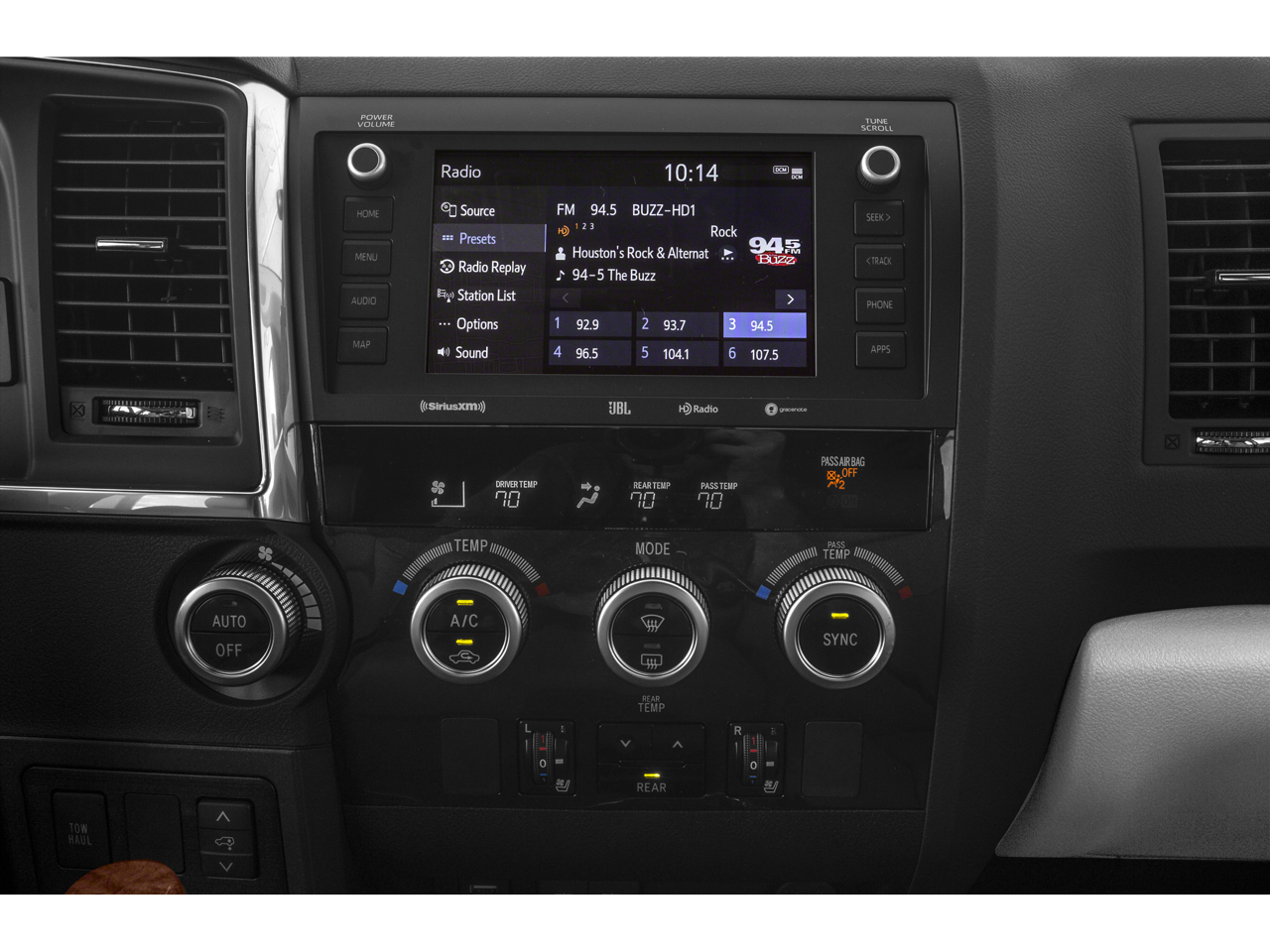 6-Speed Automatic Electronic, 4WD, 15 Speakers, 20 x 8 Alloy Wheels, 3rd row seats: split-bench, 4-Wheel Disc Brakes, 4.30 Axle Ratio, A/V remote, ABS brakes, Adaptive suspension, Air Conditioning, Alloy wheels, AM/FM radio: SiriusXM, Auto High-beam Headlights, Auto tilt-away steering wheel, Auto-dimming door mirrors, Auto-dimming Rear-View mirror, Auto-leveling suspension, Automatic temperature control, Brake assist, Bumpers: body-color, CD player, Compass, Delay-off headlights, Distance pacing cruise control: Dynamic Radar Cruise Control (DRCC), Driver door bin, Driver vanity mirror, Dual front impact airbags, Dual front side impact airbags, Electronic Stability Control, Entertainment system, Exterior Parking Camera Rear, Four wheel independent suspension, Front anti-roll bar, Front Bucket Seats, Front Center Armrest, Front dual zone A/C, Front fog lights, Front Heated & Ventilated Bucket Seats, Front reading lights, Fully automatic headlights, Garage door transmitter: HomeLink, Headlight cleaning, Headphones, Heated door mirrors, Heated front seats, Heated rear seats, Illuminated entry, Knee airbag, Leather steering wheel, Low tire pressure warning, Memory seat, Navigation System, Occupant sensing airbag, Outside temperature display, Overhead airbag, Overhead console, Panic alarm, Passenger door bin, Passenger vanity mirror, Perforated Leather Seat Trim, Power door mirrors, Power driver seat, Power Liftgate, Power moonroof, Power passenger seat, Power steering, Power windows, Radio: Entune Premium JBL Audio with Navigation, Rear air conditioning, Rear anti-roll bar, Rear reading lights, Rear seat center armrest, Rear window defroster, Rear window wiper, Reclining 3rd row seat, Remote keyless entry, Roof rack, Security system, Speed control, Speed-sensing steering, Split folding rear seat, Spoiler, Steering wheel memory, Steering wheel mounted audio controls, Sun blinds, Tachometer, Telescoping steering wheel, Tilt steering wheel, Traction control, Trip computer, Turn signal indicator mirrors, Variably intermittent wipers, Ventilated front seats, and VoltmeteR.